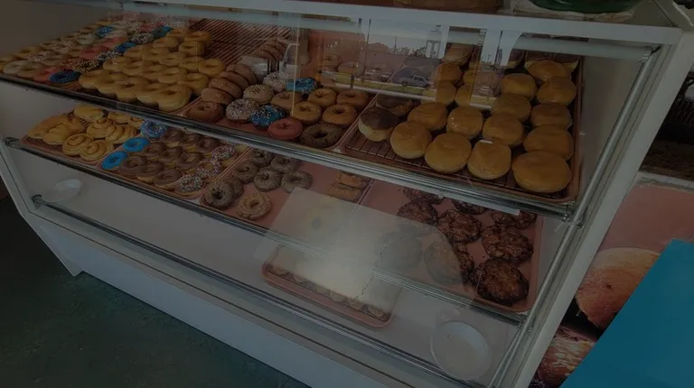 the interior of a donut shop