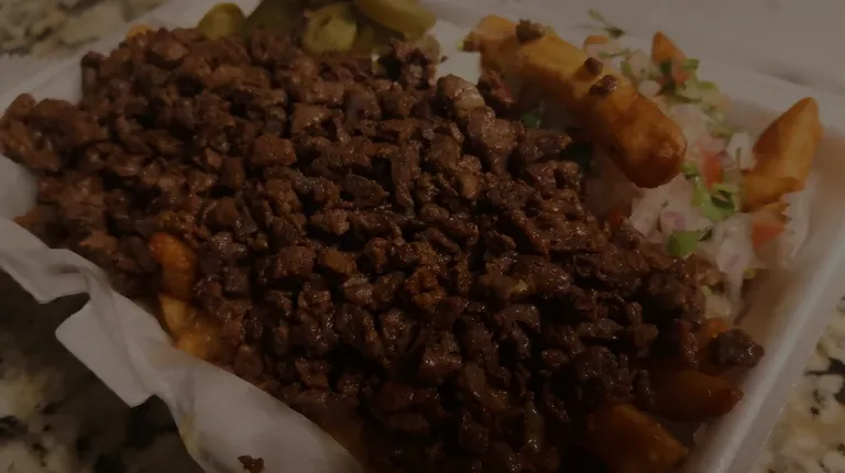Finally made it here, late last night, after hearing so much about it. I made it right when they shut off the closed sign. I'm one of those... Regardless, owners/staff were kind enough to let me get an order in: as a first timer, they were helpful with providing me a lot of info on their food selection and what they put in them. I was certainly impressed with the friendly service. When I got home, I called my son down to come eat. He said, wow ‼ When he saw this large order of beefy loaded fries. Immediately, he dug in. He said it was so good. I ordered a papa/potato con birria. It was loaded with veggies, Oaxaca cheese and birria. Really good food. Spicy too. I'll become a regular before you know it!