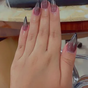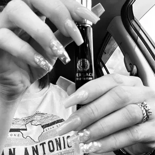 OMG!!! She did exactly what I showed her from her own Instagram! I work in the beauty industry myself. I had to research places to go since I just moved here temporarily. (Previously lived in Hawaii, Alaska, Kansas and a few other states) so I know some reviews can just be guests you can never satisfy. But I booked my appointment 2 days in advance; arrived on time as she was punctual too; she spoke another language but I showed her the pic of what I wanted and she nailed it. She consulted to ensure the shape/color/length/and application. She was efficient and was fast. My nails are very secure still and it has been 3 weeks. She did not hurt me and the salon was not ghetto like the previous review stated. I went to BTC Austin and everyone raved about who did them and how much I payed. They are eye catching And so shiny!