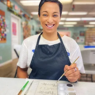 My creative creation. This place is so beautiful and painting is so therapeutic. Ms Janie and Sam were so helpful and attentive. I will be returning! Clean area and friendly staff. Great pieces to choose from. The price at first seemed a little high but it's all worth it since paint and the glaze and they FIRE IT is all included......so great value !!