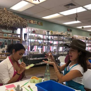 Wow... looking for something for the kids to do on a not so nice day on vacation...Well unless you want to spend a fortune I would not suggest coming here.They do have quite a few things to choose from but the costs on them is pretty crazy! Most of these things you could buy at these prices for completely finished pieces... maybe even less!The space is big... but it was pretty warm in here... and stale... really could have used some air movement.The two young ladies attending to the place were nice but they gave zero direction to our kids on what to do... luckily we have done this kind of thing before... we knew what to do.For the cost... I'd shy away from this location unless you just have money to burn.