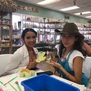 Took my daughter here to do ceramics. I thought at 2 years old she'd be too young but she ended up really having fun. Just needed some help from me with getting her situated. They have tons of different ceramics to pick from which are organized by categories. She ended up choosing a small caterpillar. My 17 year old sister picked a cool gnome mug. They have tons of tiles with all the different paints on them on the walls and you get to choose six different paints to use for your piece. They provide all the supplies such as paintbrushes and smocks. They fire the piece and you pick it up all ready to go two days later. The price was reasonable. I'd definitely recommend this if looking for something to do with kids.