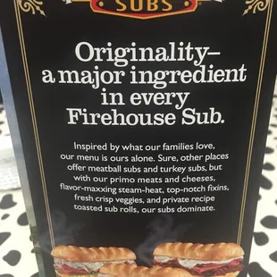 Firehouse is an excellent sandwich shop. They have great choices and a really good cheesesteak. The services was great. They were fast and polite.