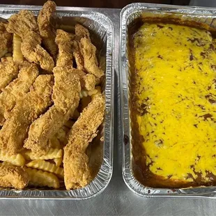 a plate of fried chicken and fries