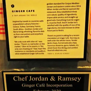 Food-amazing masala, curry, kibbeh and tabbouleh. Service: AMAZING our server Laura brought us examples of the sauces so we could pick, made fresh ginger ale and the owner shared with us the best way to eat kibbeh! Ambiance: delightful, warm, loving atmosphere, like being in the owner's kitchen. Come to find out he's the youngest brother of 3 and is running the place by himself now while his brothers have assumed responsibility for other restaurants. What a gifted family!