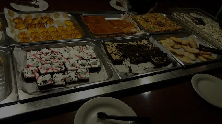 a variety of food items in a buffet