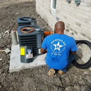 Lead Tech Nick installing a condenser unit.