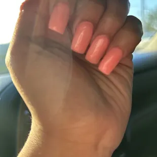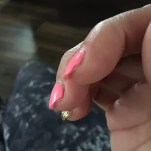 the lady who did nails was very rude. She was yanking my hands and being very rough with me. She was drilling all over my fingers , so they now hurt. She kept asking me about my shape went I told her that I was waiting to see how long I got them she was very demanding.