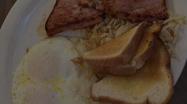 Breakfast special - 2 eggs, bacon, hash browns and toast