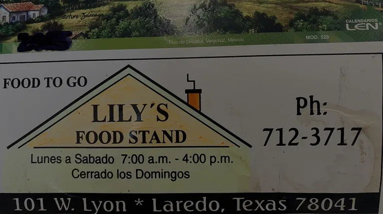 a yellow sign for lily's food stand
