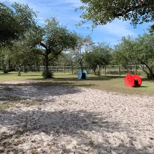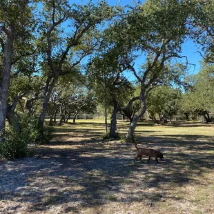 Yes, there's a dog park in Rockport! Tried finding trails and dog friendly areas, and this has been one of the best finds! Very shady, with plenty of space and places to sit. Wish there were more dogs around when we came! Idk how many people actually know about this- I've frequented rockport for years with family, and just now found it! Drive past the baseball fields and play scapes at Memorial Park, and you'll see two acres of the dog park!