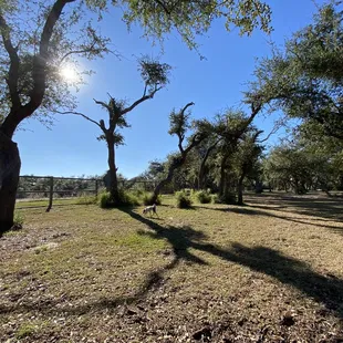 This dog park is amazing! It is tucked away inside of Memorial Park. There is a section for small dogs and a section for larger dogs. Plenty of sun and shade, grass and sand, benches and picnic tables, a water station, balls to play with and tons space to run! Our dogs loved going there everyday. Sometimes we had the whole park to ourselves, other days it had all sorts of dogs running around having a grand old time. Totally worth the visit. Your dogs will love it!