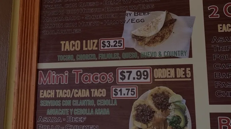 Prices have sky rocketed! Why? The food is good but dont start being greedy! Your doing well in town. Thats why people stop coming after a while bc businesses like you start getting greedy w money. You went from 8.99$ to 11.99$ mini tacos! Come on man those tacos dont even come w a drink! or anything on the side.. geez!