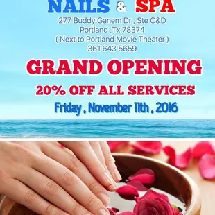 Welcome to Ocean Nail. We are grand opening today 11/11/2016 with special 20% discount for all kinds of service