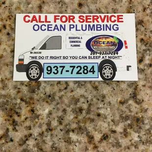 Ocean Plumbing was excellent in our time of great need.They were very friendly and did everything they could to help us. Ocean Plumbing responded to our problem on a Friday evening when other plumbing companies advertising "24 hour emergency service" wouldn't even answer our call.There pricing was reasonable, technician was very informative and offered us a choice of solutions. The quality of work appears to be exceptional. I would recommend this company to everyone. I will definitely use them again for my future needs.