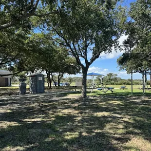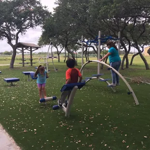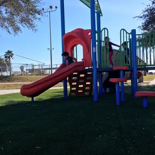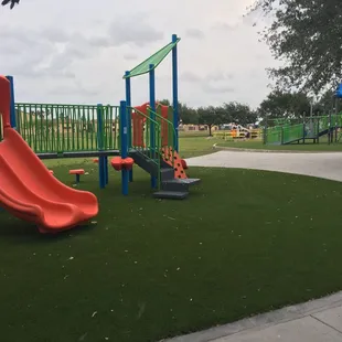 Such a great park! Plenty of space, two separate play areas and a workout area for adults. Small walking trail. The turf makes it a sticker burr free area! My kiddos love it...the ONLY downside is the homeless population around the area