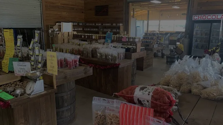 Pecans, honey, jellies, jam, produce, meat and more! Great farmers market with samples and a large variety of items. Totally worth a stop to get some local homemade foods!