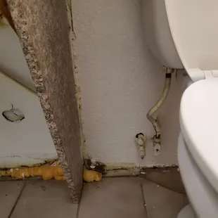 This place needs to be shut down . Our air conditioner went out at home so we just wanted somewhere to cool off for the night . The fact they charged me $15 for my dog when the room looks like this is insane. I knew it was a cheap hotel so didn't have high expectations but dang! People say they've been doing renovations for 3 years now but I've never stayed somewhere so disgusting . There was even a dirty sock under the sink . I definitely didn't expect perfection but this is unacceptable.