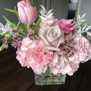 My sister sent me this very pretty bouquet from Peony Bliss. I usually don't like carnations at all but they did such a beautiful job on this arrangement that I might give carnations a second chance