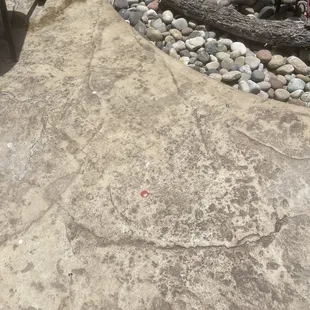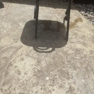 Dead cockroach under table. The table was dirty and had tape holding parts of the chair together