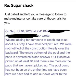 I do not recommend using this company for rentals. The house was not as advertised. We sent them an email and called them about some issues we were having and this is the only response we received. Construction was happening over the backyard our entire stay and debris and nails were all in the yard and pool. Port a escapes did not care at all. Our toddlers were picking up nails and screws from the bottom of the pool, guys on lifts nailing over the backyard while we were swimming in the pool. The issues with the house were one thing but the way it was handled was pathetic. We won't be using port a escapes in the future for renting.