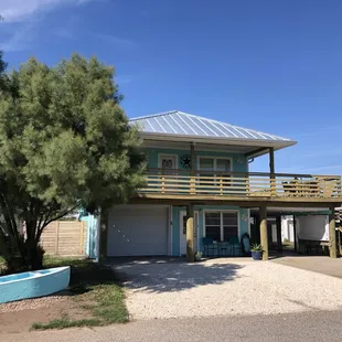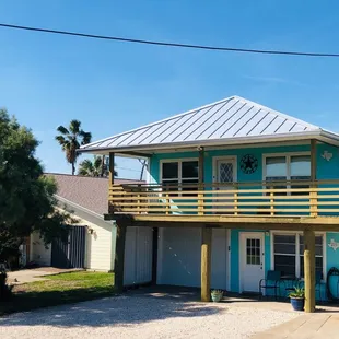 If you are looking for the perfect get-a-way home for you or your entire family, Port A Hideaway is the perfect place for 2 or 12 guests. It is the perfect home if you have teenagers for sure! This amazing house is really like 2 houses in one. The upstairs has 2 bedrooms with 2 baths, while the separate downstairs area has 2 sets of bunkbeds, a roll-away and air mattress if needed. The downstairs area is not connected to the top but has it's own open-concept mini kitchen and living (kind of like a bunkhouse style if you will) along with a private bath! Both up and down stairs a variety of coffee provided for the Keurig coffee makers. The owners of this place thought of everything when they provided "extras" in case you forgot some of your bath essentials. All showers have soap, shampoo and conditioner, but they also have items like travel toothbrushes, toothpaste, Tylenol, razors, shaving cream and feminine products in case you forgot yours at home! The kitchen in the main upstairs is fully stocked with any cooking item you might ever need! Both upstairs and down stairs have a washer and dryer.There is plenty of parking at this location that is minutes from anywhere you want to be in Port Aransas. This house is sparkling clean, has wifi, outdoor grill, fenced back yard, a nice deck to enjoy the breeze and amazing hosts. The owners are very responsive to any questions or concerns. This home would make even the pickiest renters give 5 stars!