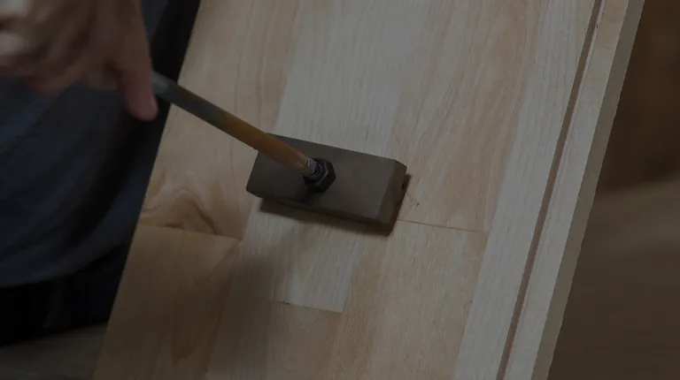 a stack of wood planks on a workbench