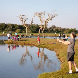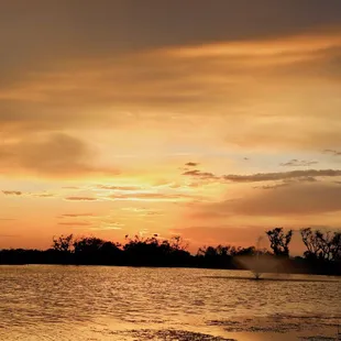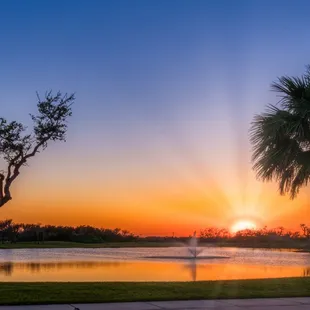 Sunset view of the fishing pond from our RV spot