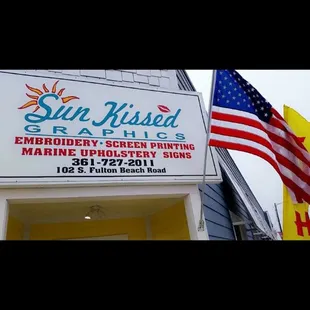 Sun Kissed also does signs and graphics! This place is a great place to get a sign made. I had a biiiig sign made, that sorta needed to be rushed. They worked with me to get the most attention-getting sign, with the largest letters I could. I've never been a quiet person, and I need signs that are as loud as I can get! Their sign looks great, and certainly grabs people's attention- they notice! The store was clean and has lots of Rockport Pirates stuff you can get custom printed on most anything. They also do their embroidery, so it seems that if you need something sewn on, printed on, or stamped, this is a great place to get it done. It's like a tattoo parlor for your stuff! The staff was friendly and got me set up with a my sign. They sent me a couple of proofs with suggestions, but the winner was obvious. We all knew it. But I appreciate their consulting with me before running to the presses.