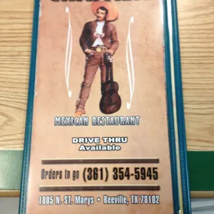 the menu for the restaurant