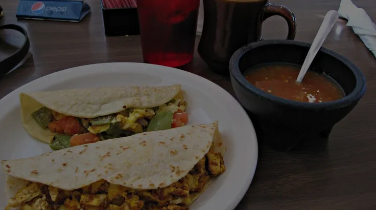 Nopal & Egg on Corn, Chorizo & Egg on Flour