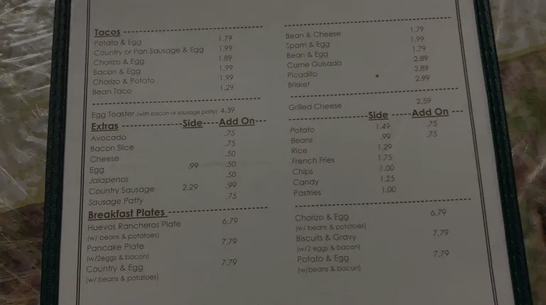 Great food, great BBQ, Tacos, Club Sandwich. It's all good. Good people! Breakfast is quick and hot !