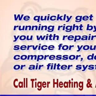 I called tiger AC. And they never answered the phone. After 6 tries they finally answered. I set a appointment and they were 5 hours late. When they started working it was horrible so I told them to leave. I ended up calling Air Force AC. That was the best choice I ever did and they did a fantastic job. I'm so glad I called Air Force AC.