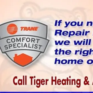 These are the guys you want to use!!!! Bought a ten thousand dollar AC from Great Air heating and cooling and they completely BOTCHED the installation. Tiger AC worked with me to get a brand new unit from Trane and installed it CORRECTLY in record time! Honest and straightforward. These are my AC guys for life!!!!
