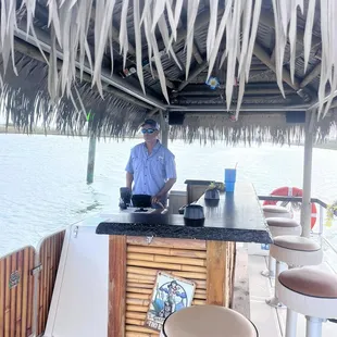a tiki bar on a boat