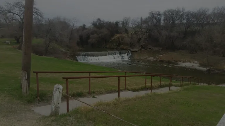 I'm pretty sure that this isn't a state park. It's a RV park located right on the highway, across the Frio River from a huge Valero refinery. Peaking over the tops of the tree, you see cracking towers, pressure valves, and exhaust vents. Over the roar of the waterfall, you can hear pressure being released and gases being mixed. Yes- there is a waterfall. The Frio River falls down about six to ten feet down a series of steep steps that looks so inviting, if it weren't for the refinery next door, and oh yea- that sign that says, "Alligators exist in this park." Nope. If that wasn't reason enough, there's a sign asking visitors to not swim, and stay off the grass. The park was clean. There's lots of spots available to camp. The sites were $5 for the site, $15 for an R/V site with water and electricity. There was a pavilion that looked nice, and lots of green spaces to run around in. There were some interesting things to look at around the park, like paintings and such. But a park alongside the river where you can't swim is kinda a letdown. I don't know how you'd be able to sleep with all the racket going on at the refinery next door. The refinery is constantly buzzing buzzers, releasing gases, running pumps, banging, beeping- it's a loud process to make gasoline.