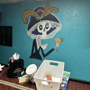 a brick wall with guitars on it