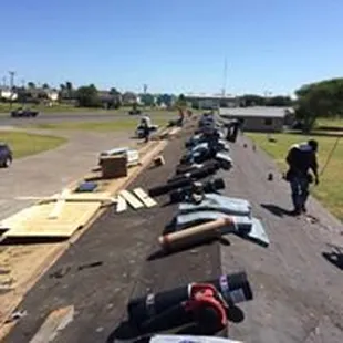 workers working on a flat roof