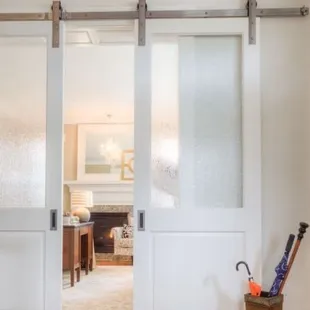 a room with a sliding door