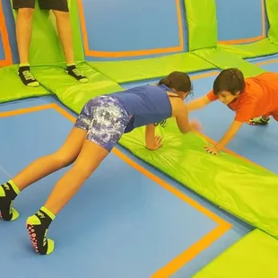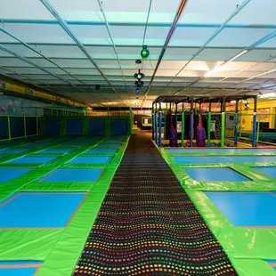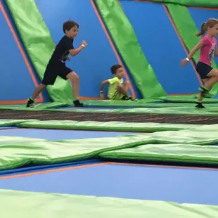 This place is fun! The prices are reasonable by comparison to other trampoline parks, and they have activities within the different zones to make it even more interesting (dodge ball, foam pit, etc). They place a colored band on your wrist to mark the allotted time you've paid for, and when they call that color, your session has ended. I do recommend filling out the release waiver online before you get there. We ended up standing in line only to be told we had to go to a back wall to sign waivers and then re-enter the pay line after that. It was a bit frustrating, because the entrance takes you to the pay line; it would be helpful if there were signs posted to let people know they had to walk to the other end to access the computer system for release waivers prior to entering the pay line. However, you can avoid this by filling the form out online before you get there. You have to use the designated trampoline socks which are not expensive - I think it was $2 for each pair. Our kids had a blast and didn't want to leave!