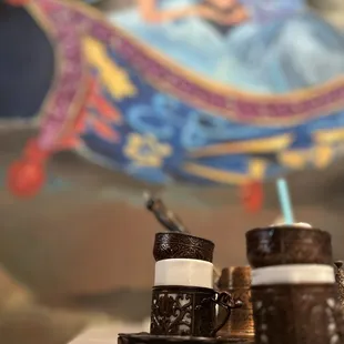 Cutest little Aladdin coffee shop. We really didn't know what to do once you walk in but you can go to table review menu and then go walk up and order at cashier they will then bring it to you. Wished they offered an Aladdin dessert tray or food tray! I think that would sell more. Will visit again and glad we were finally able to try since we were in the area but totally worth visiting. The shopping center it's in is kind of hidden but once you get there it's fine.