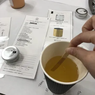 I had so much fun making candles and mixing scents at AR! Staff was super friendly and helpful when we had questions. We did not feel rushed at all and were able to enjoy ourselves. The candle making process is quick, but could take a while to decide which scents, colors, and logos you want. Keep in mind, the candles will take about an hour to set enough before you can take them home. We went before lunch, and ate in the area, then easily came back to pick up our lovely creations!