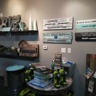 Wow! Do it yourself paradise has been located in Frisco! We fell in love with the chunky blankets and made two of them with our favorite colors to take home. The great thing about this place is you not only get the cool items but also the fun experience of learning how to make them. The staff took all of the worries out of it as they helped us throughout the process so we would have a good result. I have several gift ideas lined up and there's just something incredibly satisfying about being able to present a gift and say "I made this!". There's a lot of customization options too, so you can use your own names, phrases, etc. when you plan to make some of the items that have painted, stenciled artwork on them.I'm looking forward to making a little party out of this on our next visit, and apparently we can bring our own wine and beer. This place has a cheerful atmosphere with soothing colors and everything we need was already prepared for us. No stress involved, and no clean up as well.I found this place behind The Cotton Patch on Preston Road in Frisco. It's in the little courtyard there between Cotton Patch and Genghis Grill. Plenty of parking.