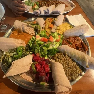 My brother recommended us trying Ethiopian. I've never had it so I was curious. I was not disappointed. We got the veggie and meat plate and another meat dish. They gave us plenty of injera which was so fluffy delicious. I would love to come back again the next time I'm in town.