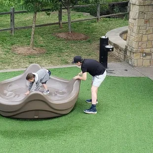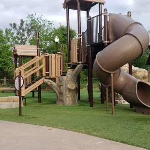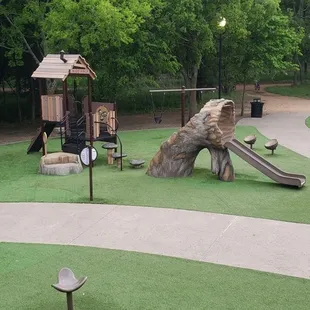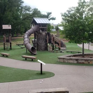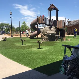 Really is a cute park for kids. The design and layout is amazing, kids can run and play and have different learning experiences. The playground area has turf which is preferred when you have smaller children who still put everything in their mouth. Only downside to this park is it is open to the street, the only thing that separates the park from cars traveling 45-50 mph is a small parking lot.