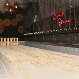 We came after we got the Dallasites101 Date Night Passport and included an hour of free play. The Pin Toss was unique. Was a bit tiring and we got hot quickly. The footballs bounce a lot too so a lot of the time you're running around to get them. It's kind of like beer pong how you play. It was a cool new concept of a sporting activity but not sure I'd do it again. We were the only ones there when we got there and can't imagine having more people or drinks around us with how much they bounce everywhere. Maybe it's a technique thing but even when they hit the pins they bounced a lot. Simply putting 3 stars because I feel like if it was crowded it'd be harder to stay in your lane and enjoy your time. We played two games then switched to cornhole. They also have billiards, darts, and shuffle board.