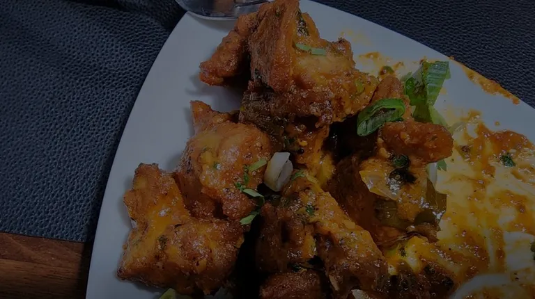 $12.99Boneless chicken cubes dipped in spiced batter, deep-fried and tossed with curry leaves in a spicy yogurt-based sauce