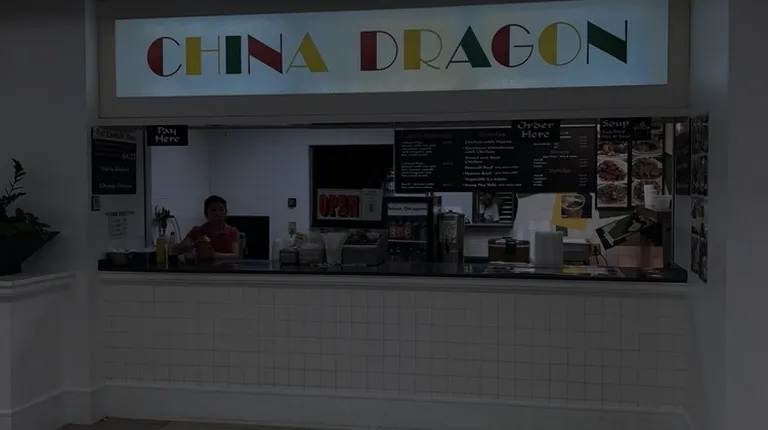 The most noticeable thing about China Garden is that it really sticks out in the shiny surrounds of the mostly white (whoa there Nelly, talking about the color of the place, not the people) plaza of the Americas food court. From the loudish multi-colored sign boasting primary colors to the divey looking menu board with the flourescent lighting, I would argue it stands proud and screams to you exactly what it will offer.Greasy Chinesey food. 9 bucks gets you a one item combo with rice, an eggroll and a cream cheese wonton which in my case looked like a steamroller ran over it. You know what it still tasted good. It's no frills here. You're getting a decent meal which I submit to you good sirs and madams can easily be two meals. I got the Hunan beef which was saucy and dark. Flavorful enough for my tastes and fortunately my white shirt survived not getting that one splash of sauce which sticks out and distracts you from the rest of your day!I wish I could give it 3.5 stars but alas 3 it is. I shall happily return albeit with a darker colored wardrobe!