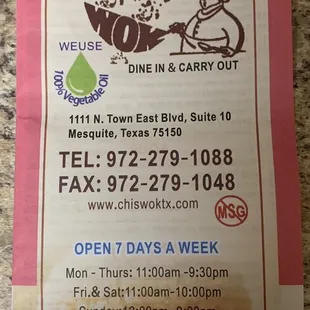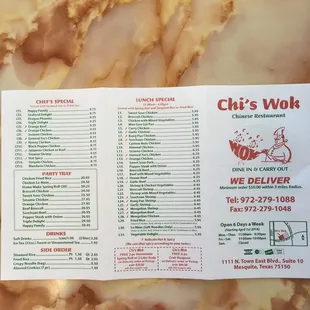 Chis wok menu