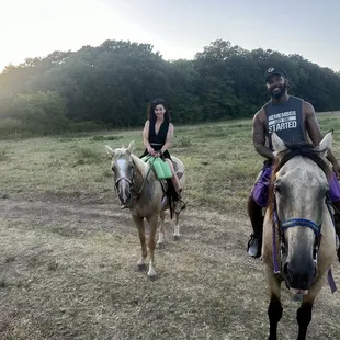 My wife and I were in the Dallas / Ft Worth area for 4 days celebrating our 38th Anniversary and Valentine's Day. I booked us a 2-hr sunset ride. My wife and I like to ride horses whenever we go somewhere on vacation but it's often difficult to find a stable that (a) cares for their horses; (b) matched horses to the experience level of the rider; and (c) doesn't just have group trail rides on horses you could fall asleep on. The folks at Chisholm Trail Rides did a great job. Since we've ridden quite a bit previously, we were given horses that had some energy! We had a private ride (with our awesome guide Chelsey) and we got to 'let the horses go' at various times which was great! Chelsey was extremely personable and a great guide. I was also impressed that before our little group mounted an left, there was a group of four riders (obviously beginners) that were going out and Chelsey and the other guide took the time to tell them several things that I've rarely seen other stables tell new riders - all of which no doubt made for a better ride. I also liked the fact that they had small packs on each horse with a bottle of water and also room for our coats (it was nice when we started but going to get cooler later) and a small pouch for phones (that's a story for later); I've rarely ever had stables use packs like these and it is very welcome.Our ride was through a 30 acre wooded area with ponds. The ride was great!Just before we finished, my wife realized her phone fell out of her back pocket (she shoved it way down but I guess it fell out when we were cantering with the horses - not sure why she didn't put it in the zipped pocket on the pack ). So, we got the horses in and then Chelsey took us out with the Mule (four wheeled utility vehicle) to search for it. We weren't able to find it and it was getting dark, so we left. When we returned to our hotel, we used the 'Phone Finder' and located the phone. The next day we drove out and asked if we could walk the property to go to the general area - and they graciously said yes. Then one of the managers (she will kill me because I forgot her name - I'm sorry ) came out with the Mule and helped us look on foot. We realized we needed to go back and use WiFi and the earth view to get a better location. As soon as we did, she knew exactly where it was and she went out in the Mule, located it and brought it back. We had the chance to talk to Ashley (the other manager) and she was awesome as well. They gave up an hour of their time today and almost the same amount of time yesterday helping us find it.The ride was great; the area is perfect for riding for all levels; the staff are all super friendly and helpful. I would absolutely recommend them!